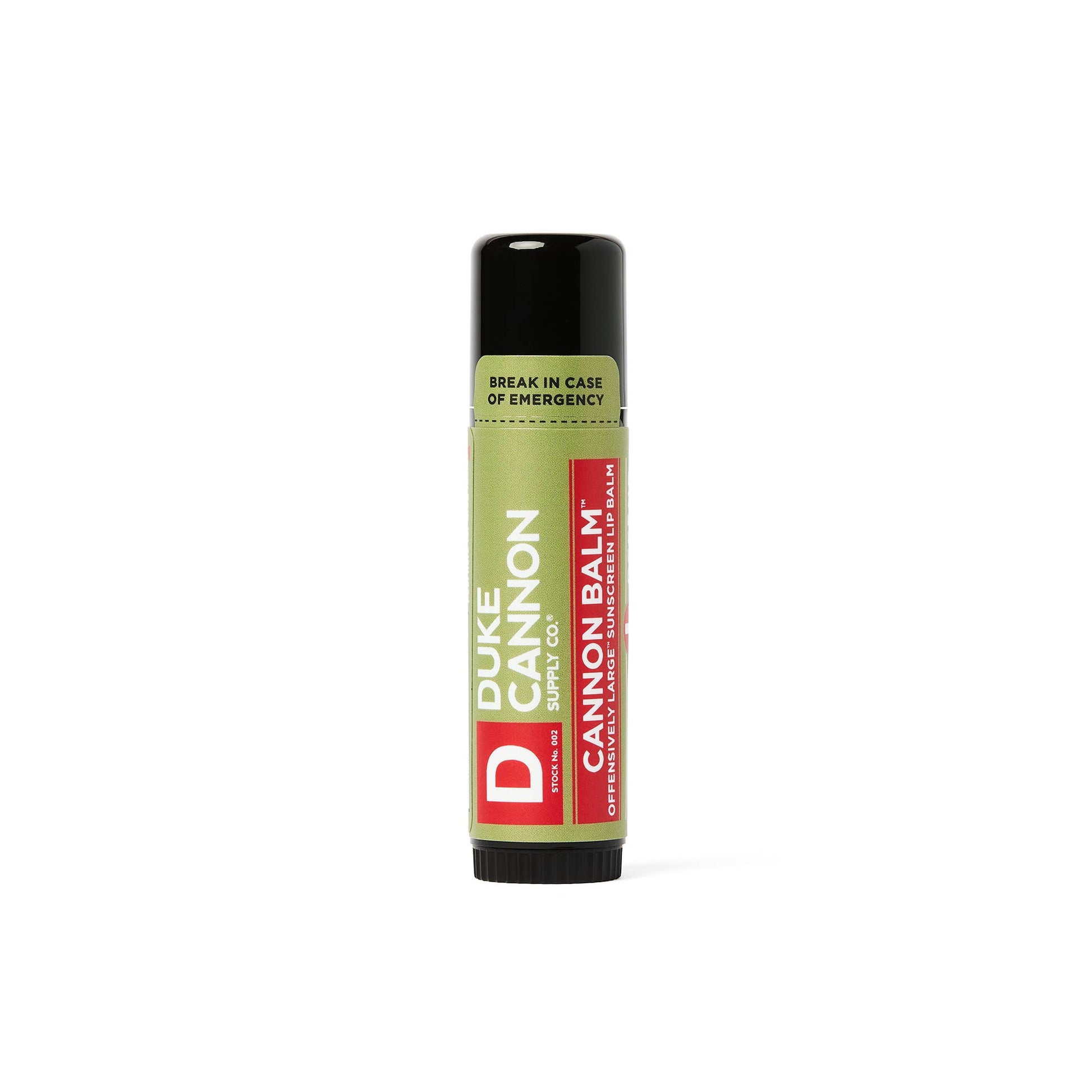 At .56 oz, Cannon Balm is nearly 4x the size of the stuff they sell in grocery store check-out lanes. It's made of premium, natural and organic ingredients and formulated with SPF 15 to protect against UV rays. Tested by active duty military personnel, the unique formulation holds up in the harshest conditions, withstanding temperatures up to 100 degrees Fahrenheit. Has a fresh mint taste that appeals to men, not teenage girls.